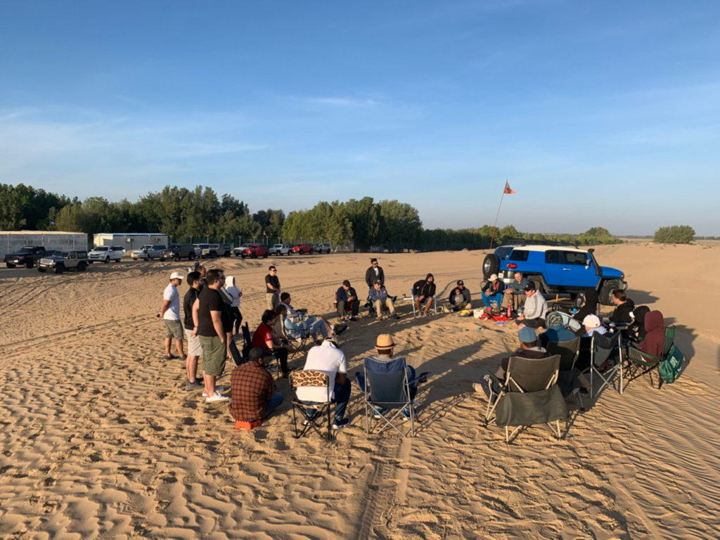 The morning briefing was very well explained and took the edge off my โfirst timerโ nerves as it made me more confident with what to expect through out the morning drive. It also showed me the โfamily cultureโ inside Desert Fellas as we all sat around like one big family ๐