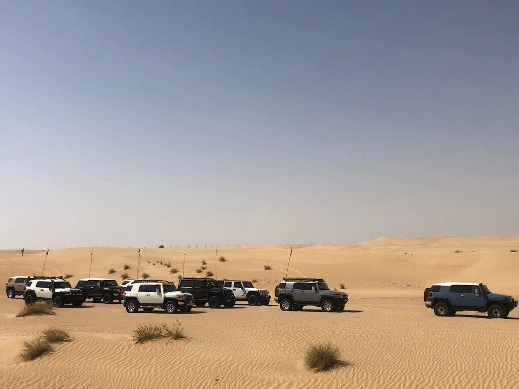 After a rather lengthy and high paced warm up, the convoy regrouped for a short break followed by a theoretical lesson on cresting. Since mastering this technique takes a lot more than just theory, we took to the dunes immediately to see just how well the group had taken absorbed the lesson.