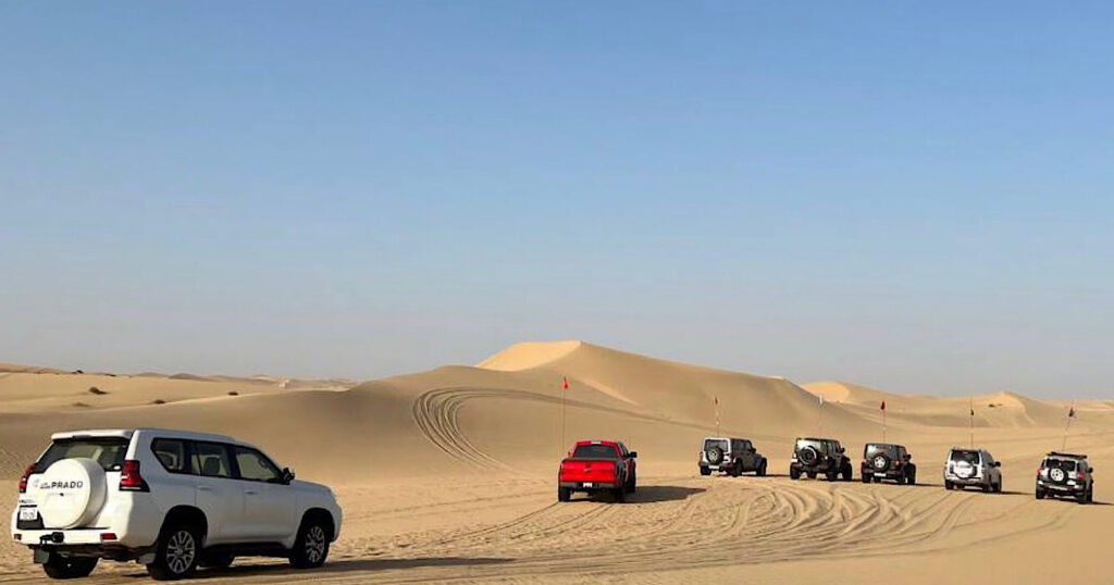Basic training 2 convoy had anticipated tire deflation in total darkness. However, much to our surprise, sunrise over Al Qudra desert was so early that the convoy arrived at the meeting point in almost full daylight.