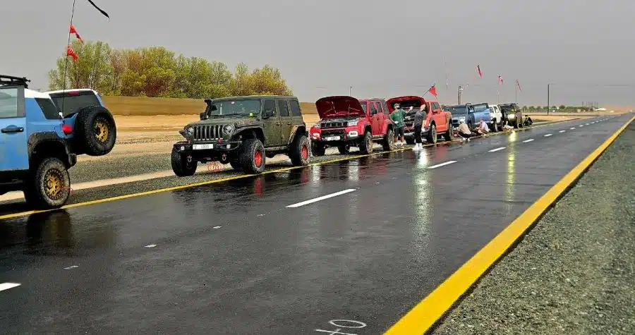 We arrived at our meeting within overcast skys screening the sunset rays at dawn, a rare sight in the desert. Days objectives was to bring our newly graduates from basic training into a fun filled adrenaline adventure into the dunes of Abu Dhabi.
