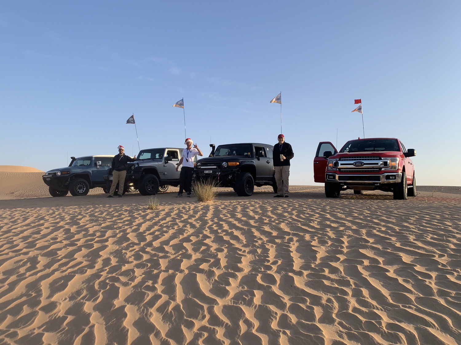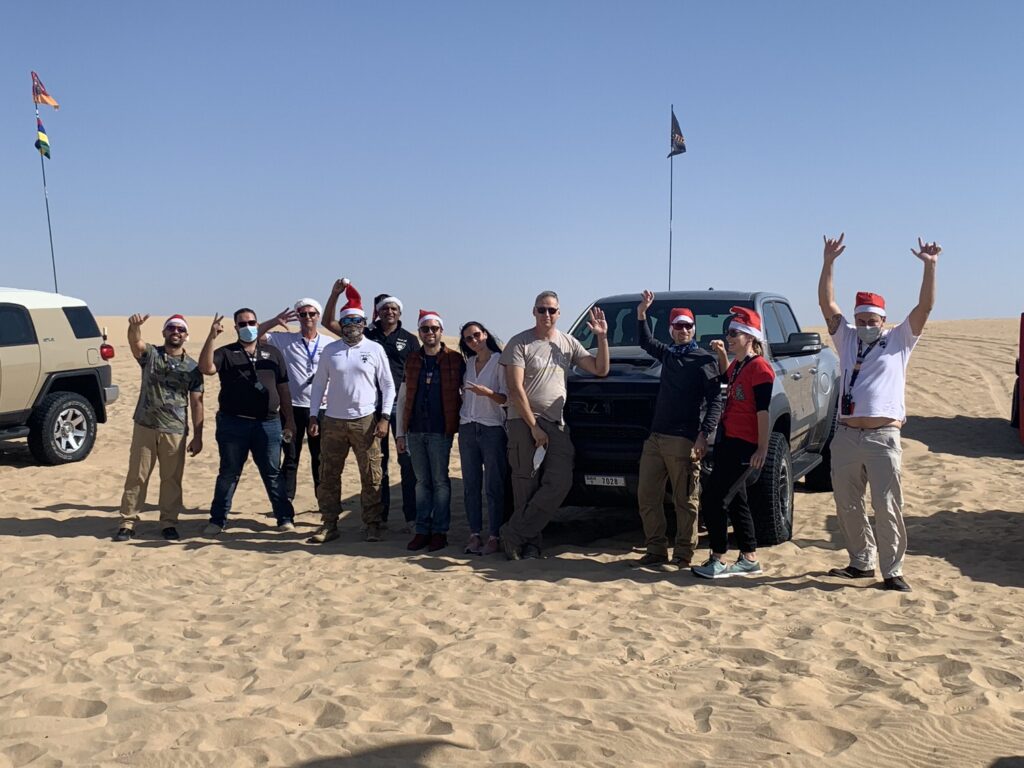 We started the ride with a small delay but with high spirit. We haven’t driven in this part of the desert for a while. The beautiful red sand turns into bright and becomes buttery and deceptive, creating unpredictable dune shapes with unexpected ditches. This did not prevent us from making a few beautiful and long lines and incorporating them with the technical parts of the desert. The last part of the ride was a bit monotonous thanks to the under construction area that cut our way.