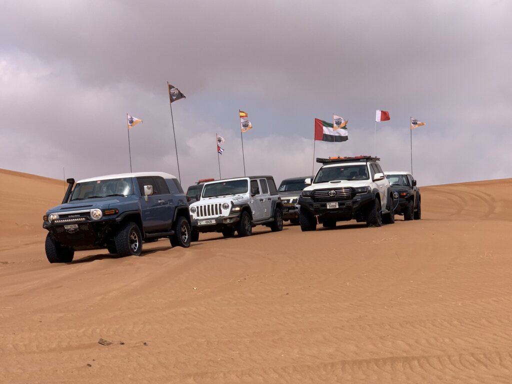 Today’s drive was in beautiful Sharjah Desert close to “Mleiha Archeological centre“. Drive was relatively fast paced with lots of side sloping and climbing. It was like a dance with dunes but in a junior rhythm. The first part of the drive was warm up on familiar terrain, where we could see a clear difference in performance comparing with the trip from just a few weeks before. The group is progressing very fast. Today we had a few second tries, recovery and tire pop-out. So the ride was intermittent but despite that we managed to make a nice mileage and correct a few flaws in performance. We also had one jumpy situation where I saw a lot of positive elements in the reaction of individuals. In a short debriefing, we pointed out some elements and we make conclusions what helped us in our drive after.