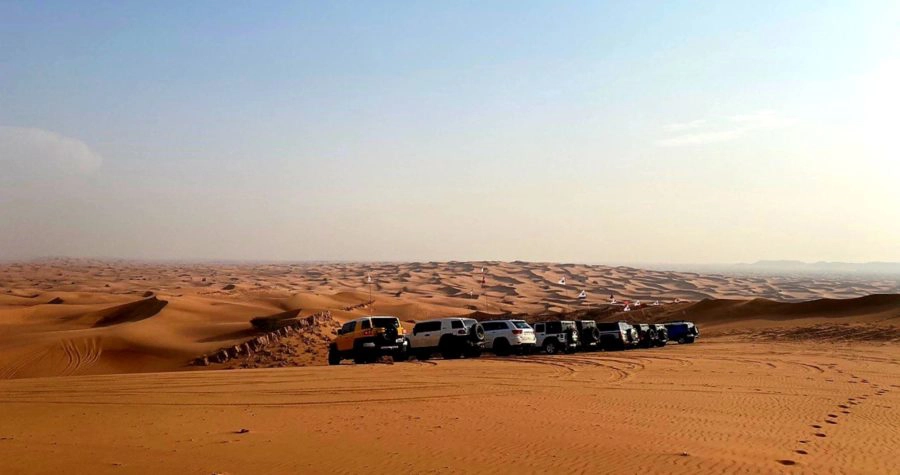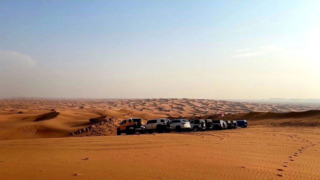 Every one arrived before time following saftey mesures, tempretures were checked, flags raised, tyres deflated and briefing done over the radio while enjoying the AC in our cars.