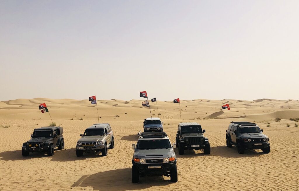 The drive started with a brisk pace and increased quickly as we moved on to larger well spaced dunes in Al Qudra. The dune formation was ideal for high speed side sloping, so that’s exactly what we did. Our Juniors did an amazing job of following the slightly challenging lines while maintaining the flow of the drive. Towards the end of this segment we encountered powder soft sand, so we switched to low range and continued along our way.