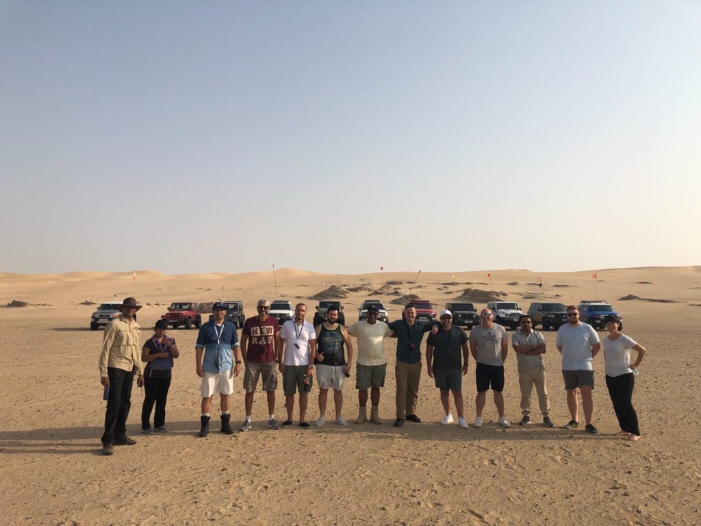 After safety briefing convoy was set Andrea 2nd lead, Amhar, Joe, Mahmoud, Lenny, Pradeep, Germain, Feras, Luca and Preggy. with Radio check done we got moving. the drive started with some nice and easy straight cresting and some smooth side sloping. Except for a few second tries everything was smooth. we then moved into a more technical area with small tight dunes were we got to know our vehicles better, with a few second tries and stuck situations we finally got to some bigger dunes which tested our feeling of respecting gravity. 35 Km later we reached the exit point at 9 Am sharp as planned.