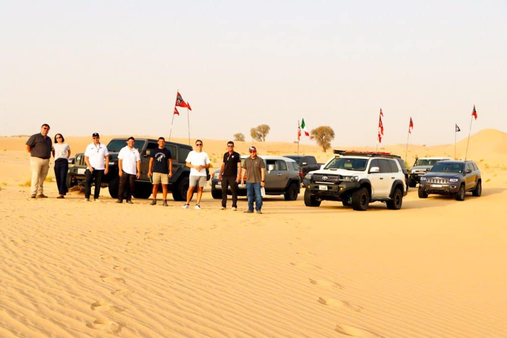Our Solar Storm convoy assembled as dawn was breaking in a fairly remote spot beyond the solar park. It was great to welcome back some fellas who had been off the sand for the summer and a chance to catch up before the safety briefing.