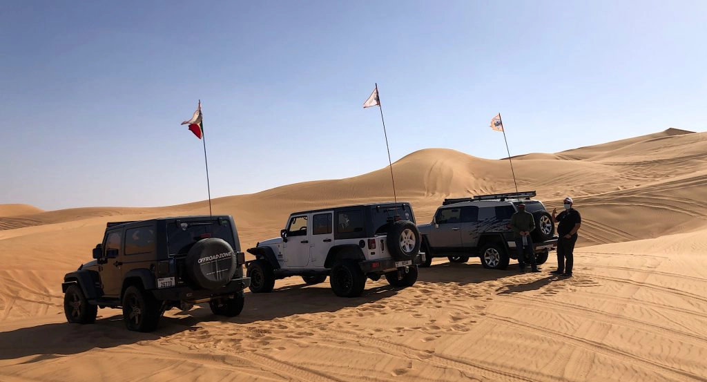 The value of a small convoy in a technical area cannot be overstated. The convoy of three headed off into the dunes near the Tawi fence and made quick progress getting to the first challenge. The sand texture was extremely unpredictable – with firm crests in some areas and extremely soft slopes in others. There were a few instances where a climb had to be abandoned midway due to powdery sand slowing progress drastically, but the small and experienced convoy dealt with these situations flawlessly.