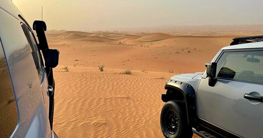 In anticipation for a very hot morning this small convoy of off roaders met just before sunrise to explore the dunes of Swiehan on the Heat Stroke drive.
