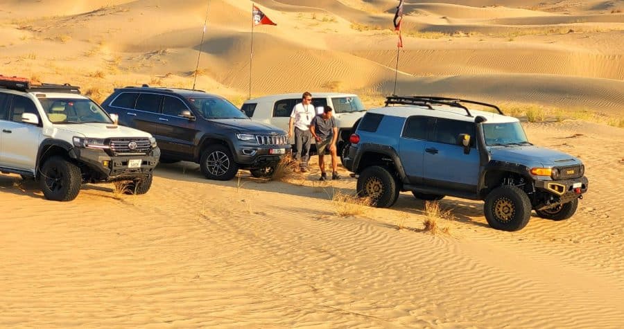 Reaching the playground area we faced some very technical dunes that have not seen tracks in many months, these sand demanded some skill to navigate powdery soft patches that bogged us down and when momentum was not perfect the odd second try was necessary. Luckily we were able to soldier on towards our morning break at Stingray Lake enjoying the sightings of many gazelle heards in the area and a freshly brewed cup of Karak in hand.