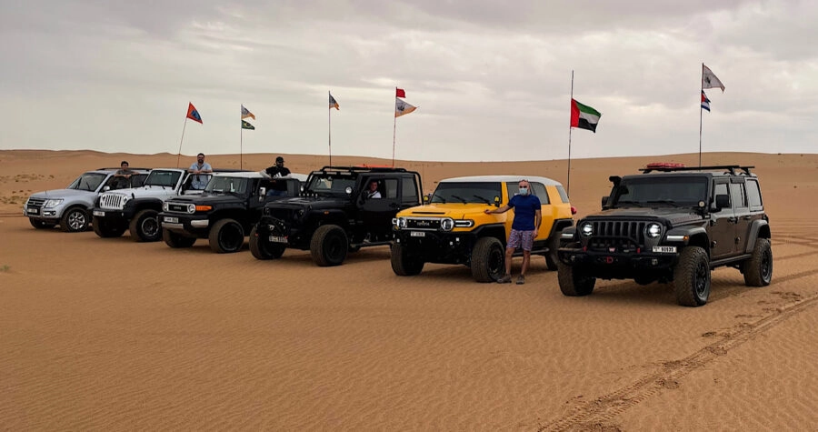 Every drive is a learning experience for me and today’s trip meant finding the switch for the windscreen wipers! The light rain made reading the dunes easier but the sand moved differently so a lot of focus was required through the technical area. Aquaman and Preggy are so cool and calm and we had the added bonus of an ultra-cool Talal as second lead. A couple of stucks and a tricky recovery were handled professionally and safely and the whole group came together as a team. Added bonus of a couple of short cresting slots to keep Marco happy! Thanks guys for the great morning and I look forward to driving with you again.